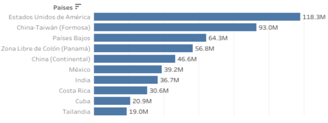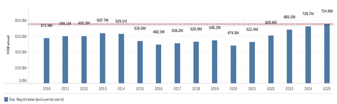 valor de B/. 988.1M (B/. 754.9M en exportaciones registradas y B/. 233.2M en exportaciones de valor