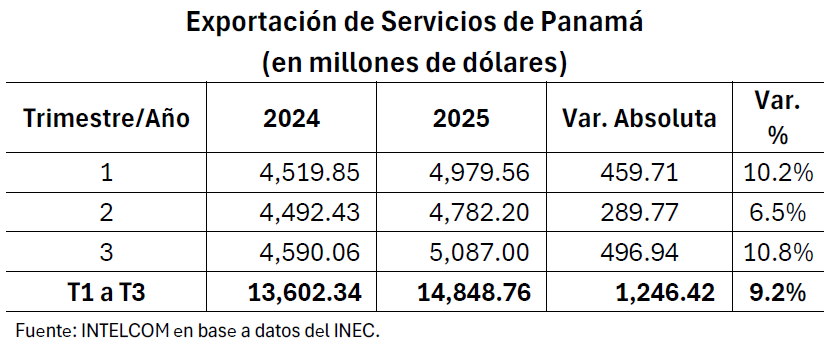 EXPORTACIONES DE SERVICIOS DE PANAMÁ ALCANZAN SU NIVEL MÁS ALTO EN EL TERCER TRIMESTRE DE 2025